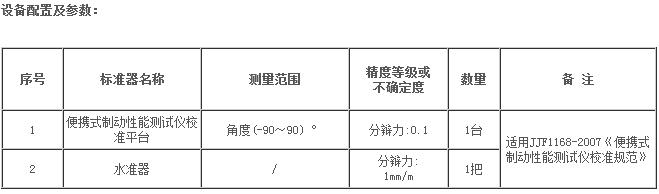性能及使用范圍:本裝置是用于靜態(tài)校準便攜式制動(dòng)性能測試儀加速度量值的專(zhuān)用檢定校準設備,它能準確產(chǎn)生重力加速度和傾斜角度標準值,具有輸出直觀(guān)、操作方便、性能穩定可靠等特點(diǎn),適用于計量測試技術(shù)機構、機動(dòng)車(chē)檢測行業(yè)、汽車(chē)維護與保養行業(yè)以及相關(guān)部門(mén)對同類(lèi)檢測設備的量值校準工作。