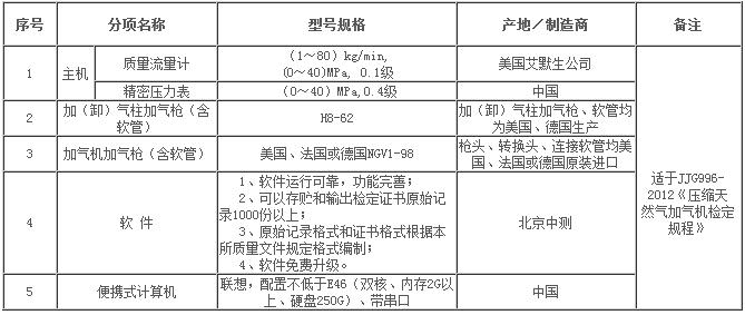 壓縮天然氣加氣機檢定裝置主要技術(shù)參數